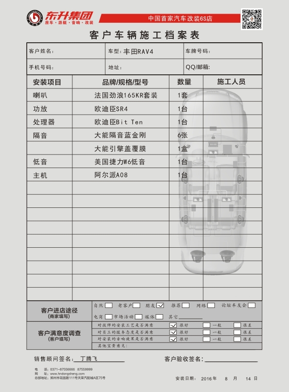 详细的施工产品配置单,有序的工作流程,无处不体现着我们安装的工艺、态度及音响的效果!
